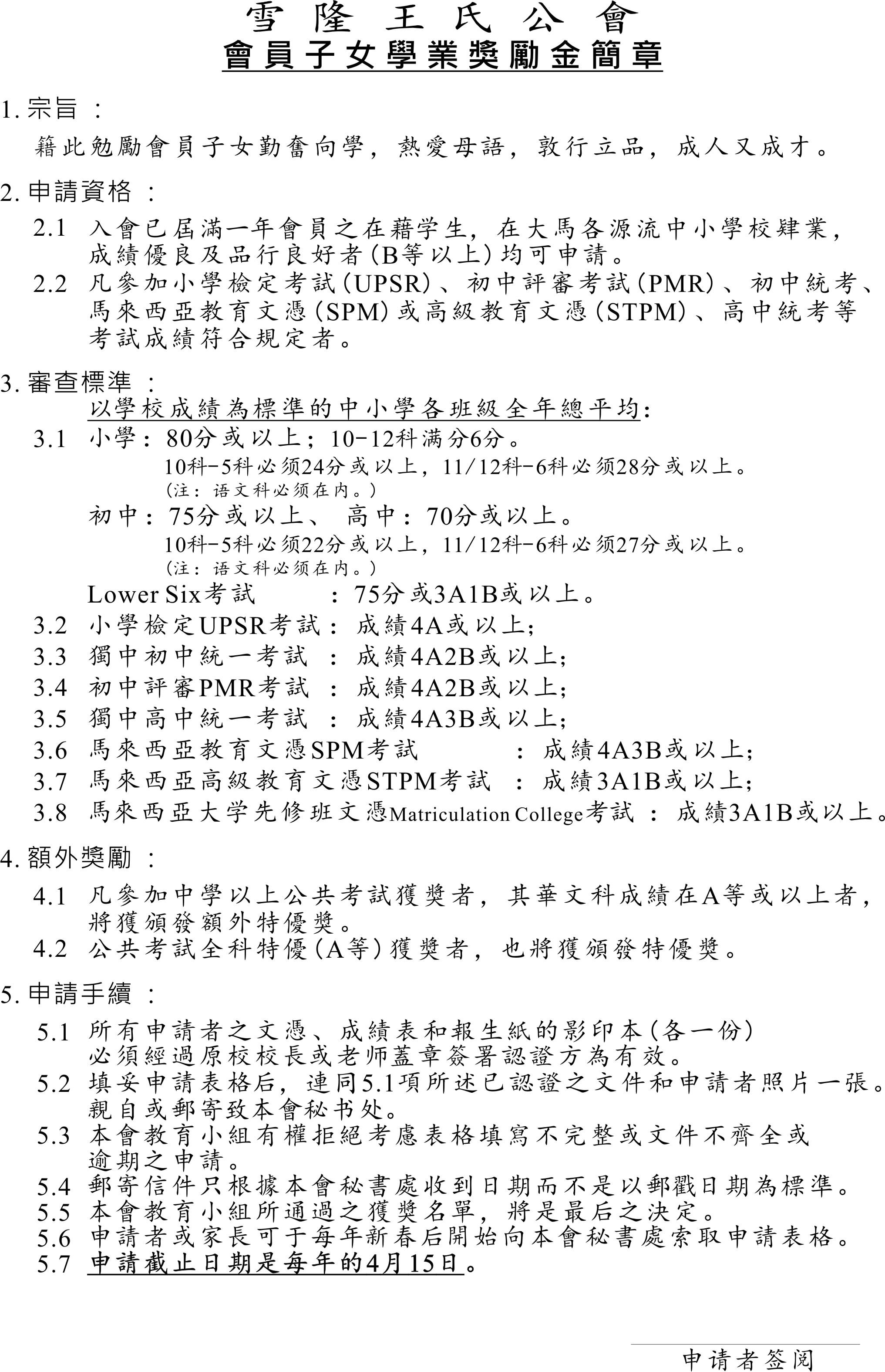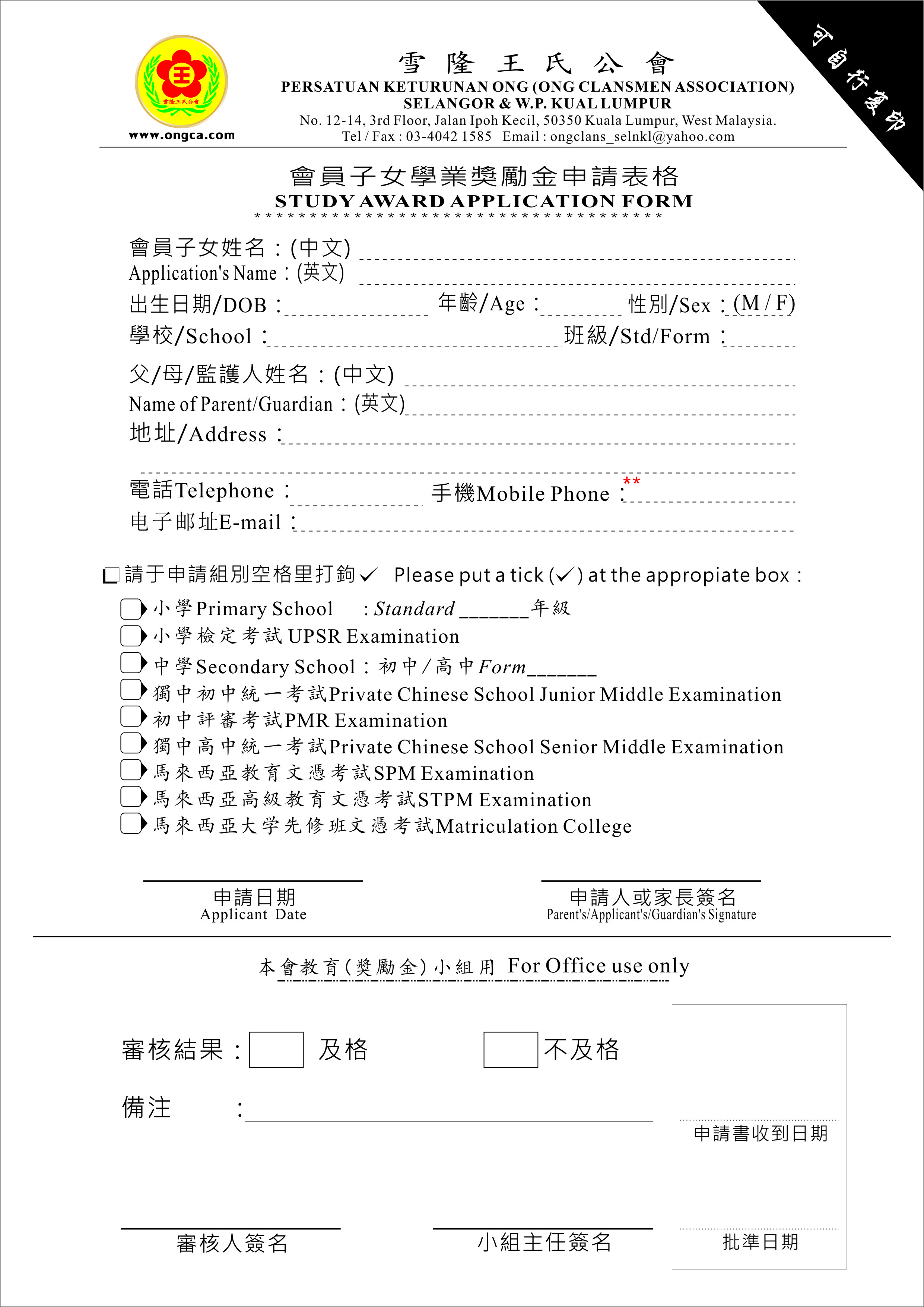 会员子女“学业奖励金申请表格”2015